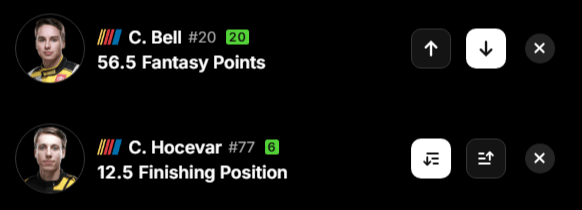 We are doubling up on the parlays for the final race and getting back to our pessimistic ways. Bell is a menace at Phoenix, but with two teammates in Championship contention, I don’t think he will want to steal their glory. There is a chance he beats this score on place differential alone, but he would need a top 3 finish, which I expect him to be shut out of. Hocevar qualified well, which he tends to do at Phoenix, but he has a top finish of 15th in his Cup career here. Hocevar has no problem finding himself some trouble and has 312 laps to do just that.