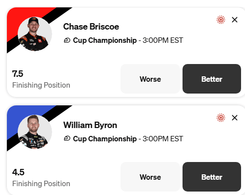 There was only one plus money H2H on the betting card, so we are changing it up a little bit. A lot of it, actually, I tend to fade drivers on Underdog, but I am putting my money where my mouth is. I expect the Championship Four to finish in the top four, and if that happens, this bet will be a winner.